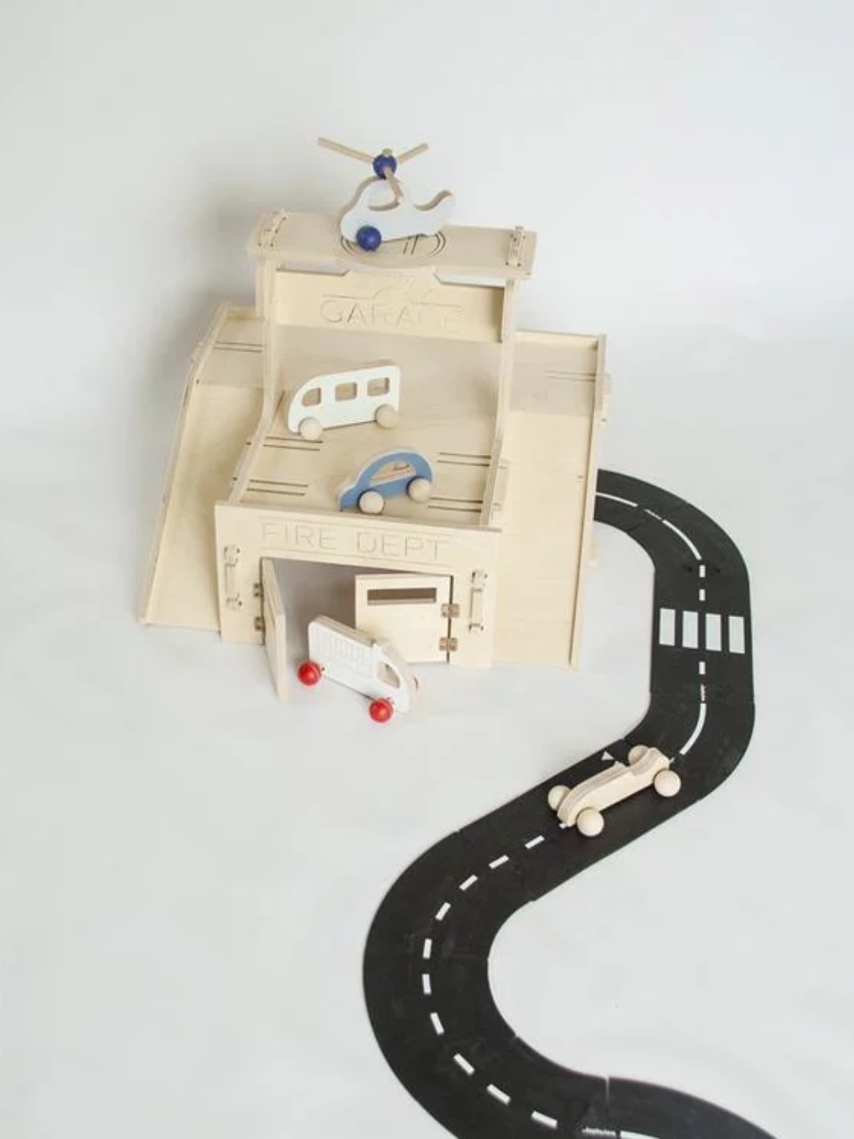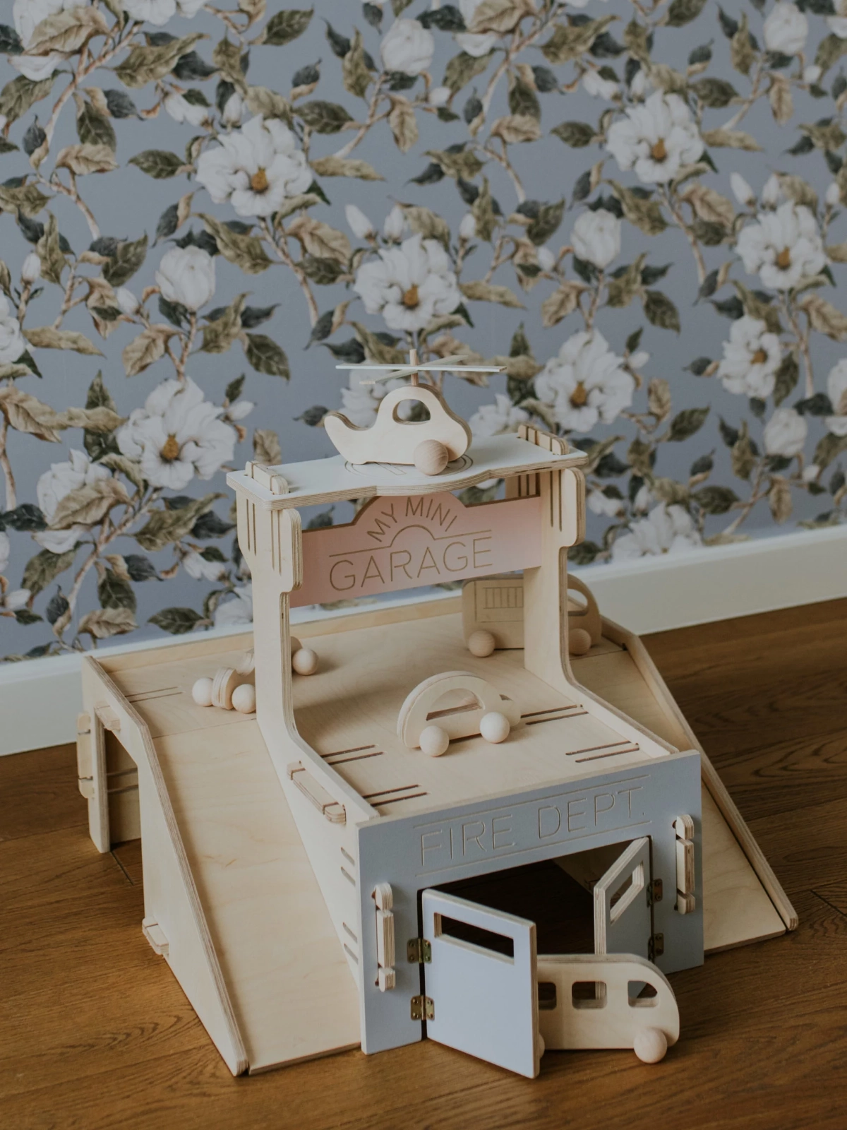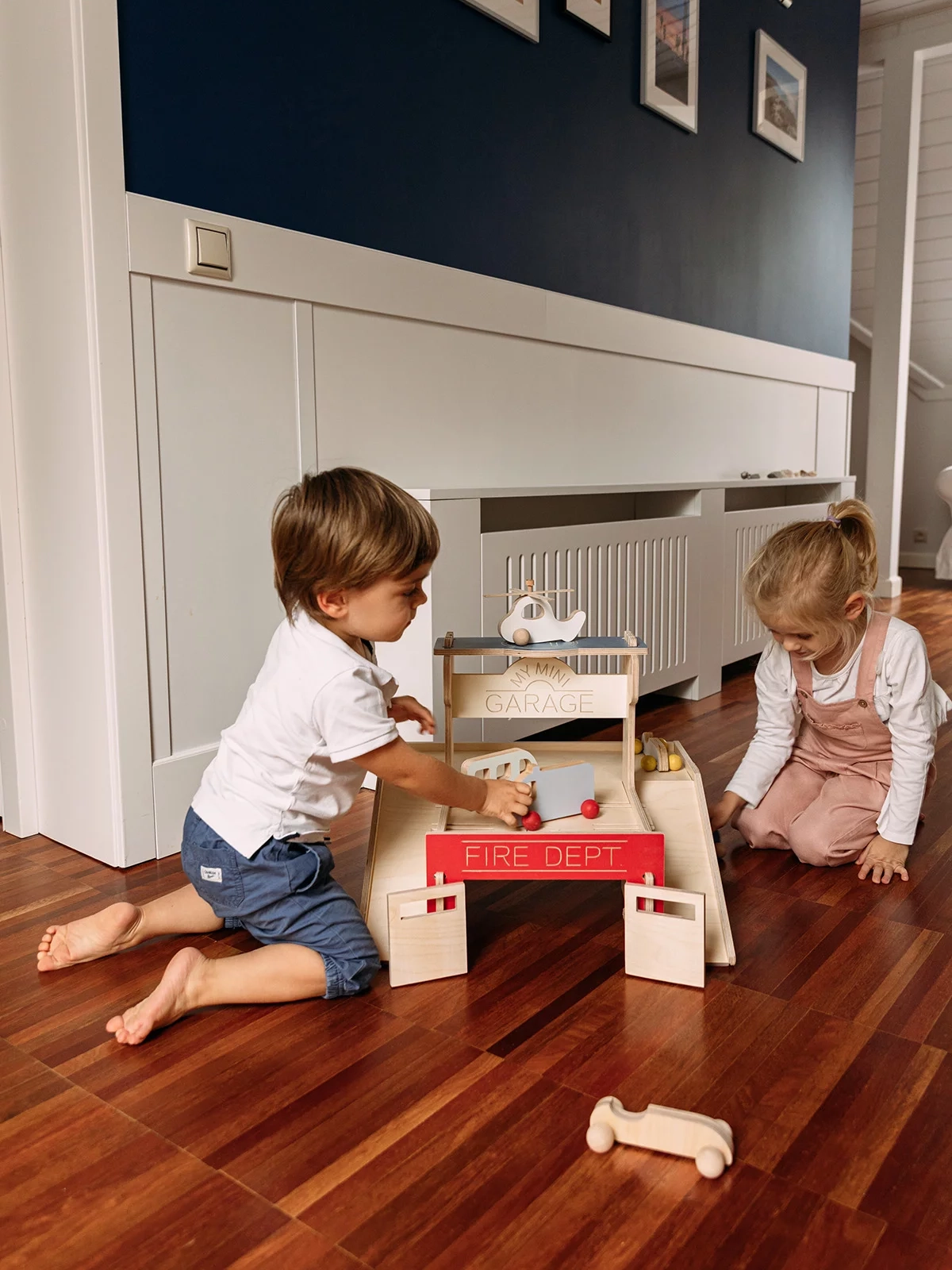 Ein hölzerner Parkplatz für die Kinder My Minie Garage.