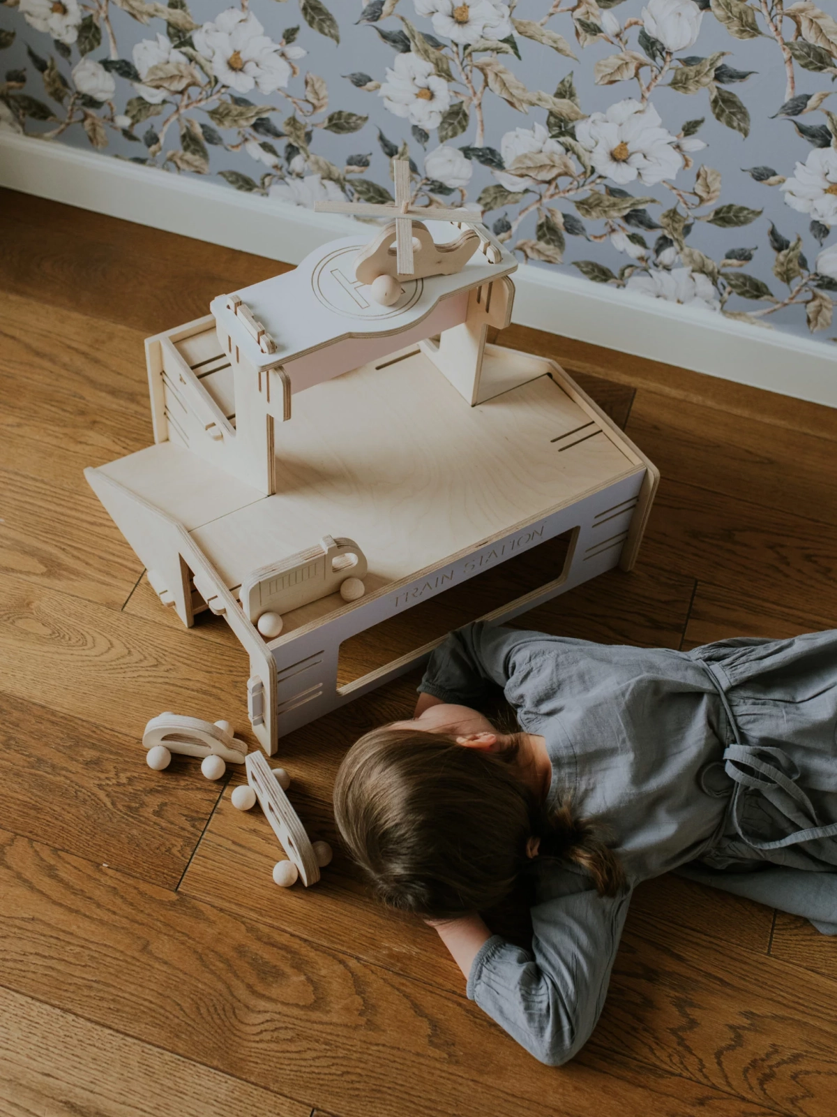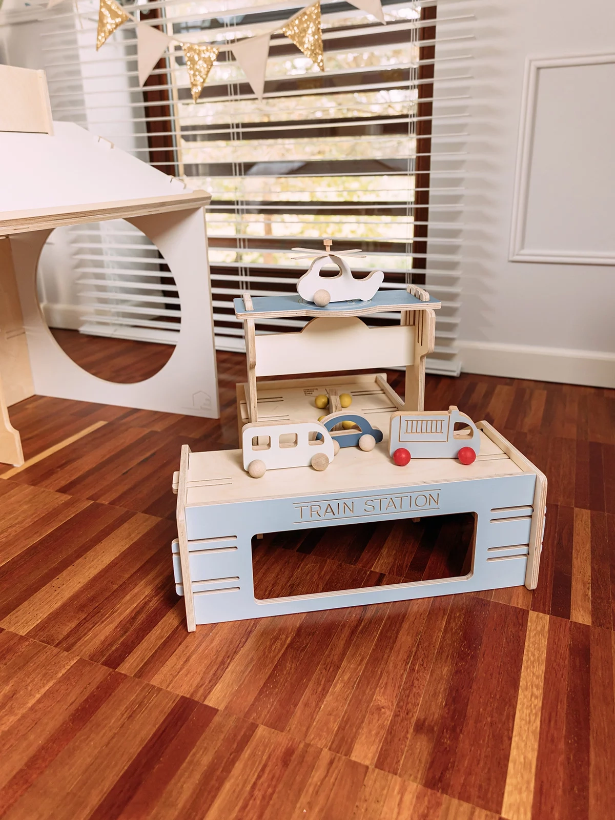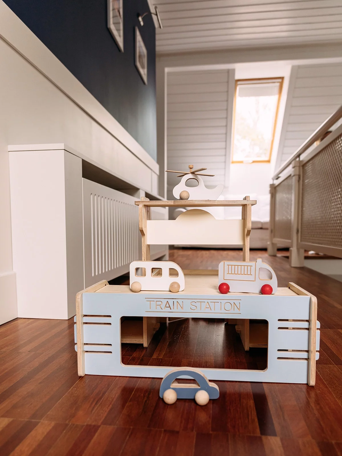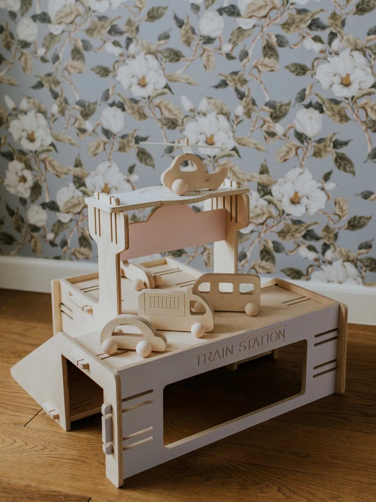 Ein hölzerner Parkplatz für die Kinder My Minie Garage.