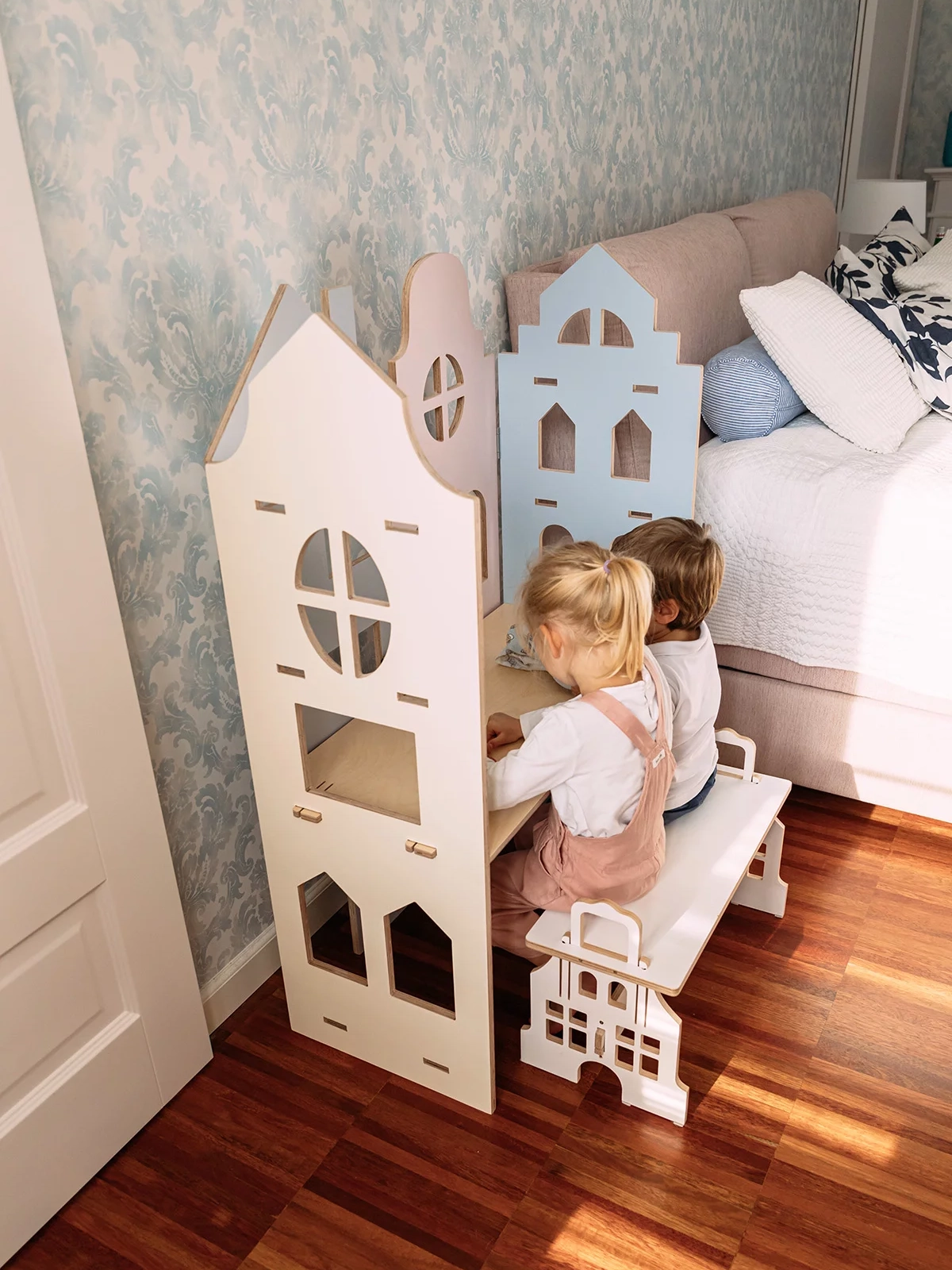 Vor Ihnen unser nächster Vorschlag – ein Podest, das unsere Kinder unter die Wolken hebt. Es wird kein Problem mehr sein, nach einer Zahnbürste zu greifen oder auf die Finger zu klettern, um gemeinsam mit den Eltern Geschirr zuzubereiten.