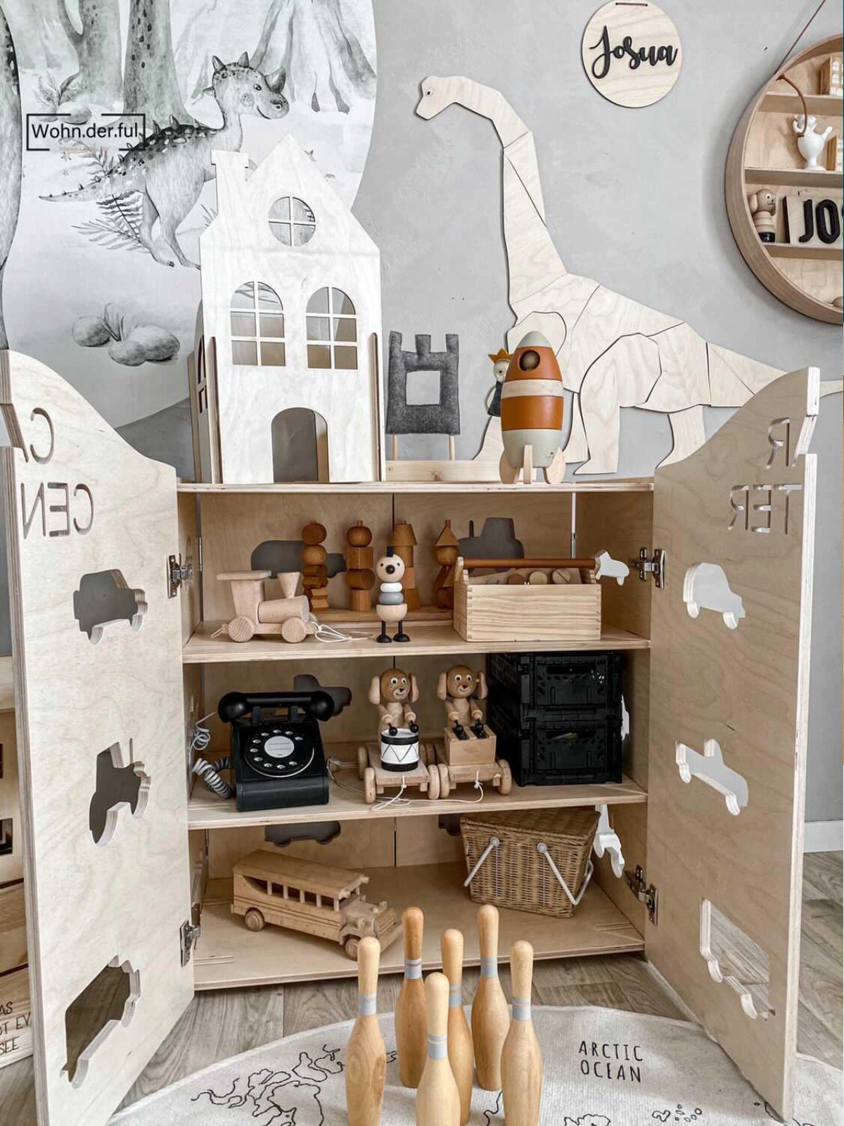 Es ist ein perfekter Platz zur Aufbewahrung der Lieblingsspielzeugautos. Und das ist noch nicht alles. Das gesamte Projekt ist auf einem vierflügeligen Wandschirm aufgebaut. Dies ermöglicht, die Regale einfach und schnell zu entfernen, um einen Paravent zu schaffen, der entweder als Deko im Innenraum oder als Raumtrenner verwendet werden kann. Um es so originell wie möglich zu gestalten, haben wir alle möglichen Fahrzeugformen in die Tür geschnitten, so dass jedes Kleinkind ihre Namen einfach lernen kann. Wir bieten drei Projekte in einem. Welches wird zu Ihrem Liebling?