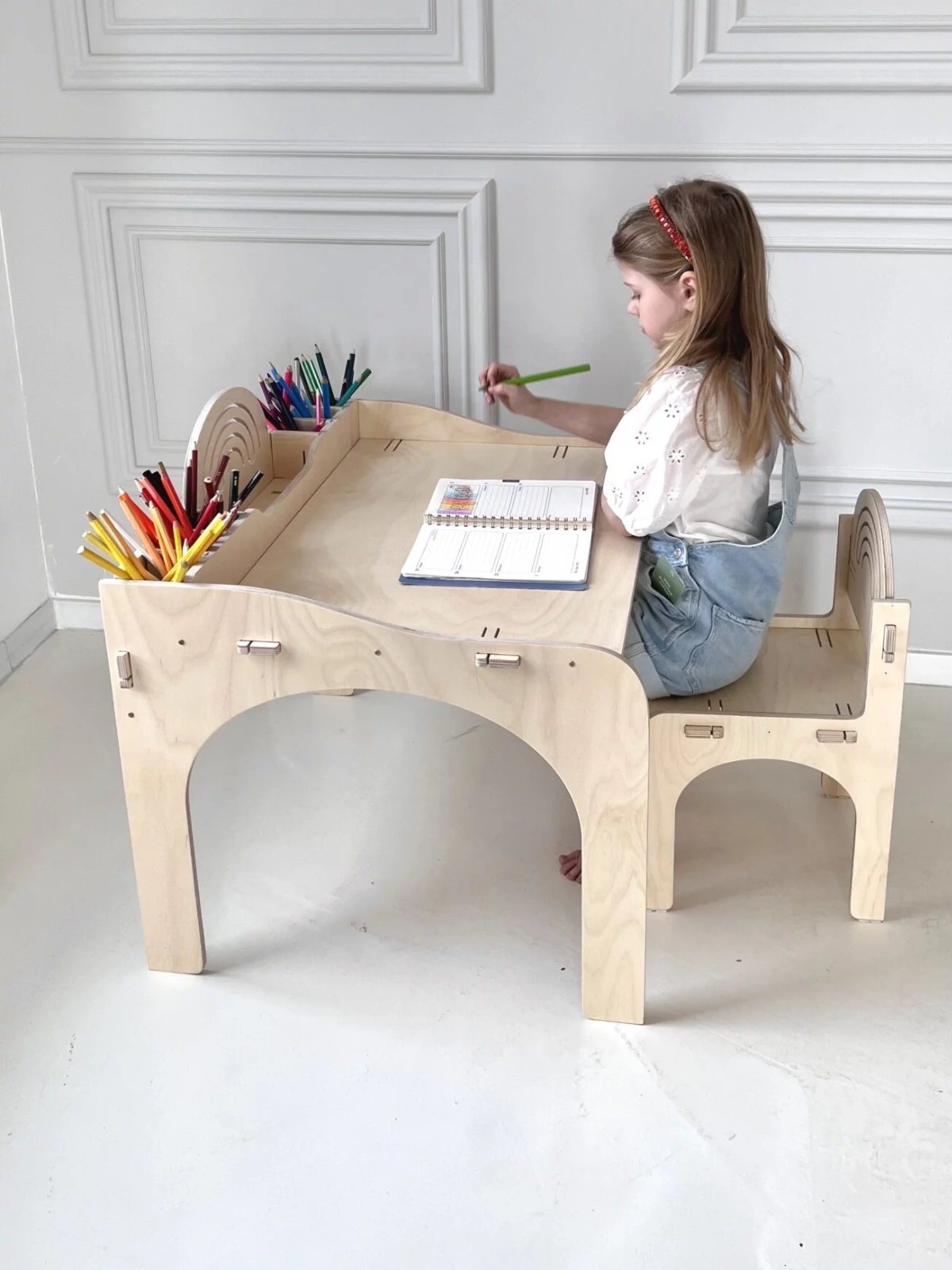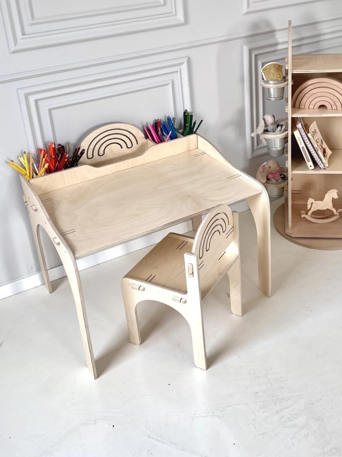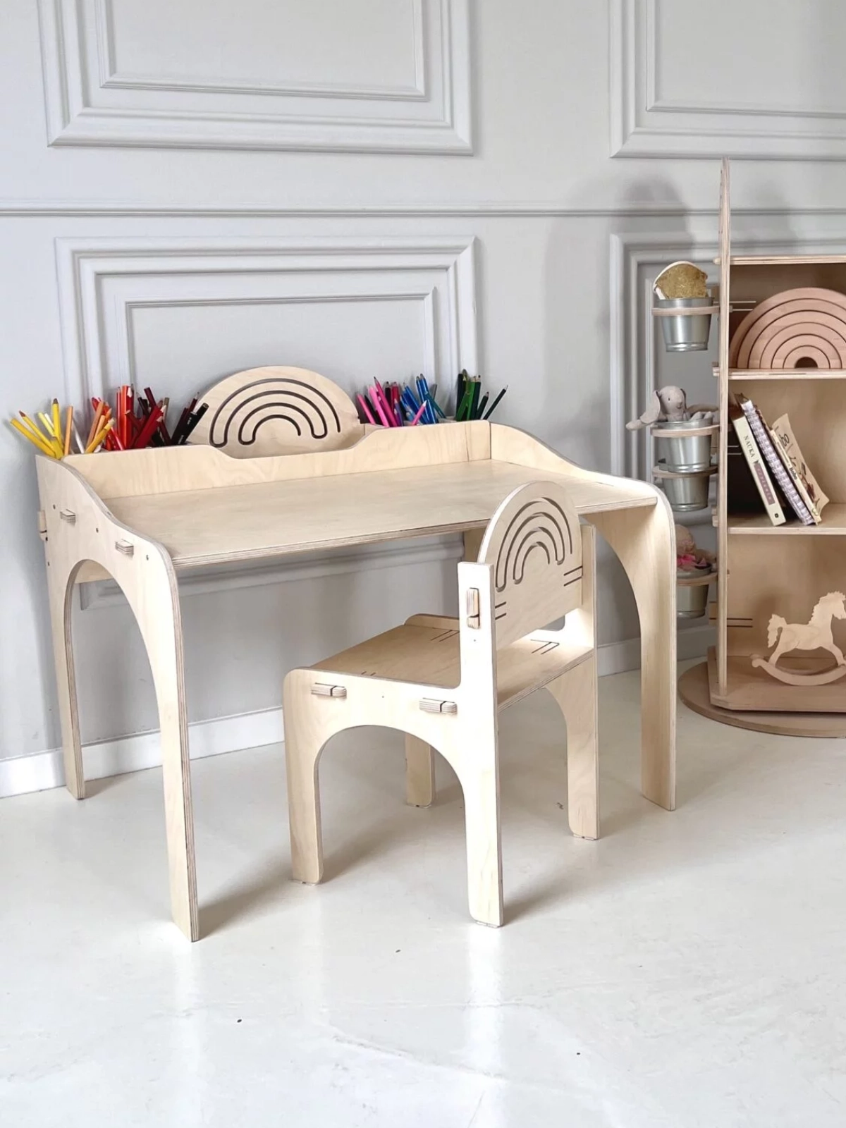 The Rainbow children’s chair forms a set with the The Rainbow desk. What they have in common is integral design and workmanship. This set will make a place for creative activities, crazy experiments or quiet learning more attractive.